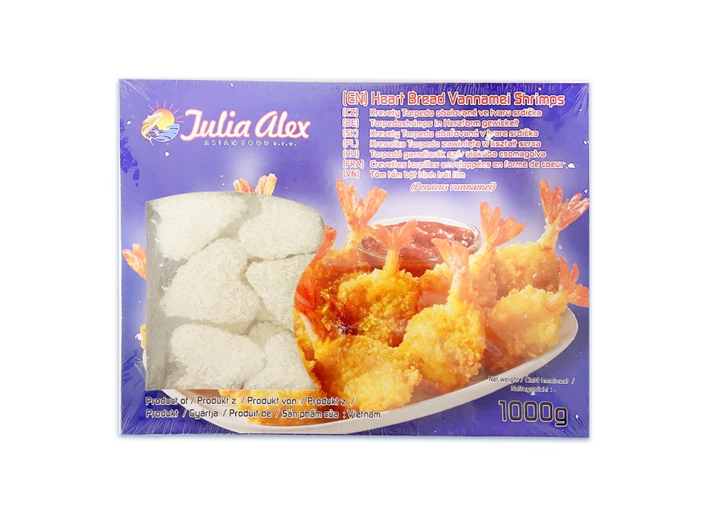 Složení: Krevety 50% (korýš 96%; sůl; stabilizátor E451, E452). Pečivo 50%. Příprava těsta: modifikovaný škrob, vápník z kalciované skořápky, emulgátor, rostlinný tuk. Směs těsta: pšeničná mouka, modifikovaný škrob, sůl, rostlinný tuk, guarová guma E412, pšeničný protein, aminokyselina, kypřící prášek, emulgátor, extrakt z koření. Strouhanka: pšeničná mouka, tuk, cukr, droždí, sůl.
