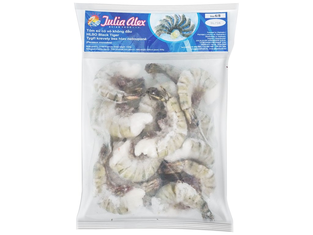 Tiger shrimp 6/8 unpeeled, headless 10x1kg
