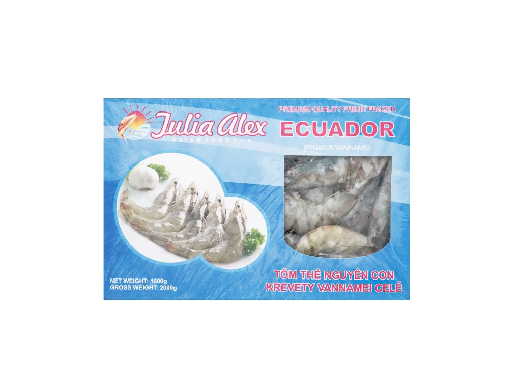 Vannamei shrimp 20/30 unpeeled whole 6x2kg