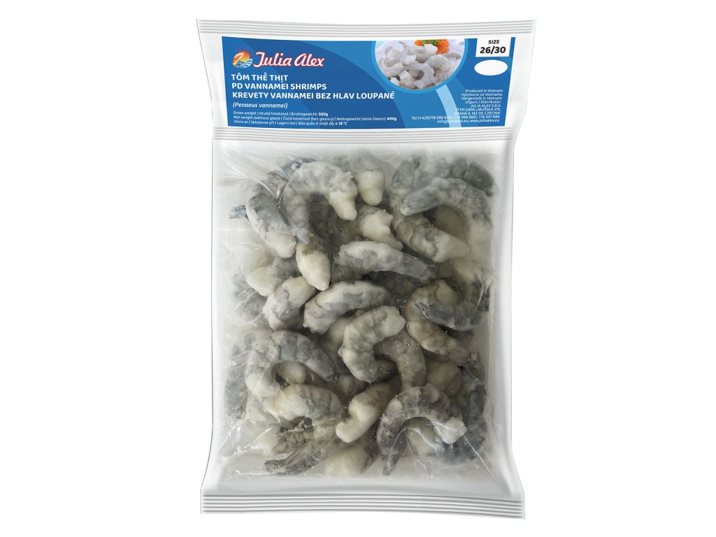 Tôm thẻ thịt 26/30 không đầu không vỏ | Krevety Vannamei 26/30 loupané, bez hlav, syrové | Vannamei shrimp 26/30 peeled, headless, raw | Vannamei-Garnelen 26/30 geschält, kopflos, roh