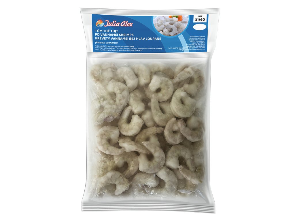 Tôm thẻ thịt 31/40 không đầu không vỏ | Krevety Vannamei 31/40 loupané, bez hlav, syrové | Vannamei shrimp 31/40 peeled, headless, raw | Vannamei-Garnelen 31/40 geschält, kopflos, roh
