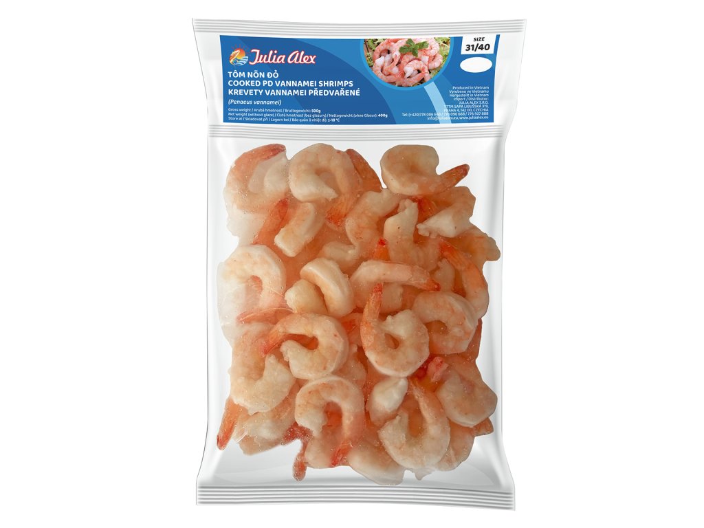 Tôm nõn đỏ 31/40 không đầu không vỏ | Krevety Vannamei 31/40 vařené bez hlav, loupané | Vannamei shrimp 31/40 cooked headless, peeled | Vannamei-Garnelen 31/40 gekocht, kopflos, geschält