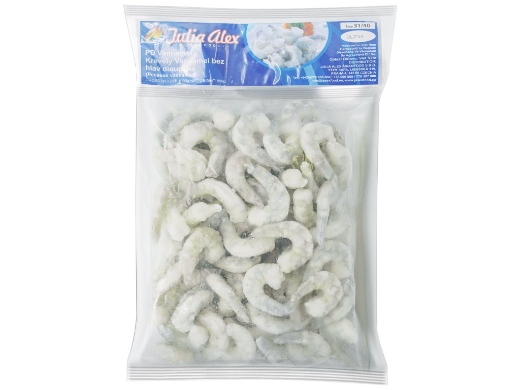 Vannamei shrimp 31/40 peeled, headless 10x1kg
