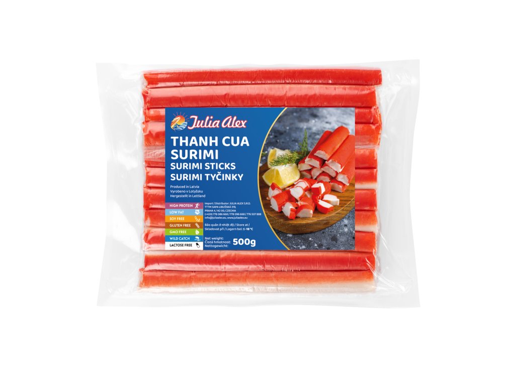 Složení: Voda, rybí maso (nemipterus virgatus), pšeničný škrob, cukr, modifikovaný tapiokový škrob, sójový olej, sůl, krabí aroma, emulgátor (E450, E451), barvivo (E120, E160C) Ingredients: Water, fish meat (nemipterus virgatus), wheat starch, sugar, modified tapioca starch, soybean oil, salt, crab flavour, emulsifier (E450, E451), coloring agent (E120, E160C)