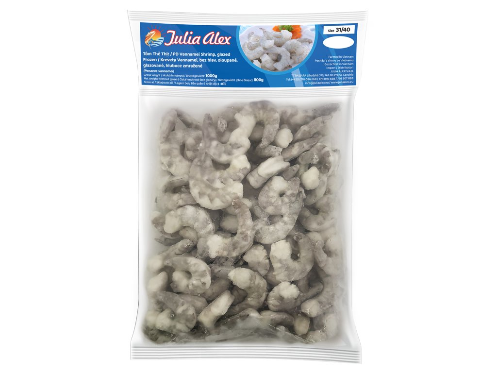 Krevety Vannamei 31/40 loupané, bez hlav, syrové 10 x 1kg