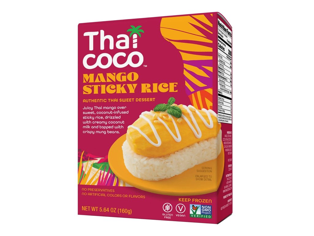 Ingredients: Mango, sweet rice, coconut milk (coconut meat, filtered water), cane sugar, roasted mung beans, salt, rice flour.