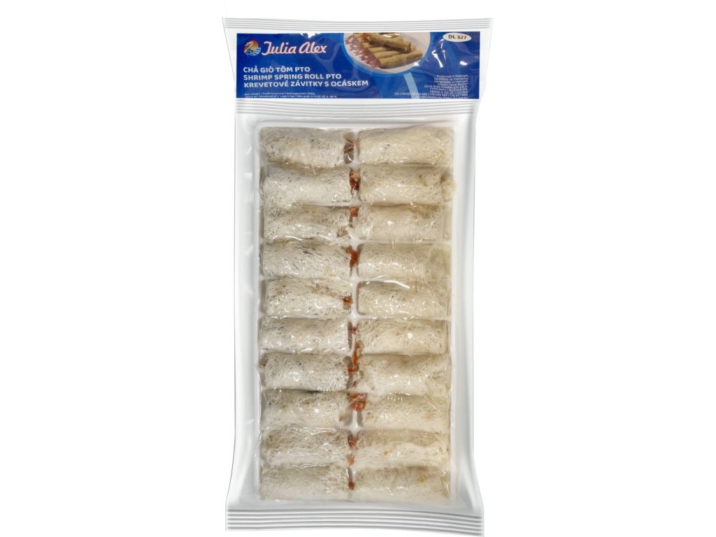 Složení: Taro 28%, jicama 19%, mrkev 6%, koření 5%, síťový rýžový papír, krevety 28%, maso nozovce obecného. Ingredients: Taro 28%, jacama 19%, carrot 6%, spices 5%, net rice paper, shrimp 28% (parapenaeopsis hardwickii)-caught in western central pacific ocean: FAO 71, grey feather back meat 14% (notopterus notopreus)-caught at freshwater in VietnamDoplňkové parametry