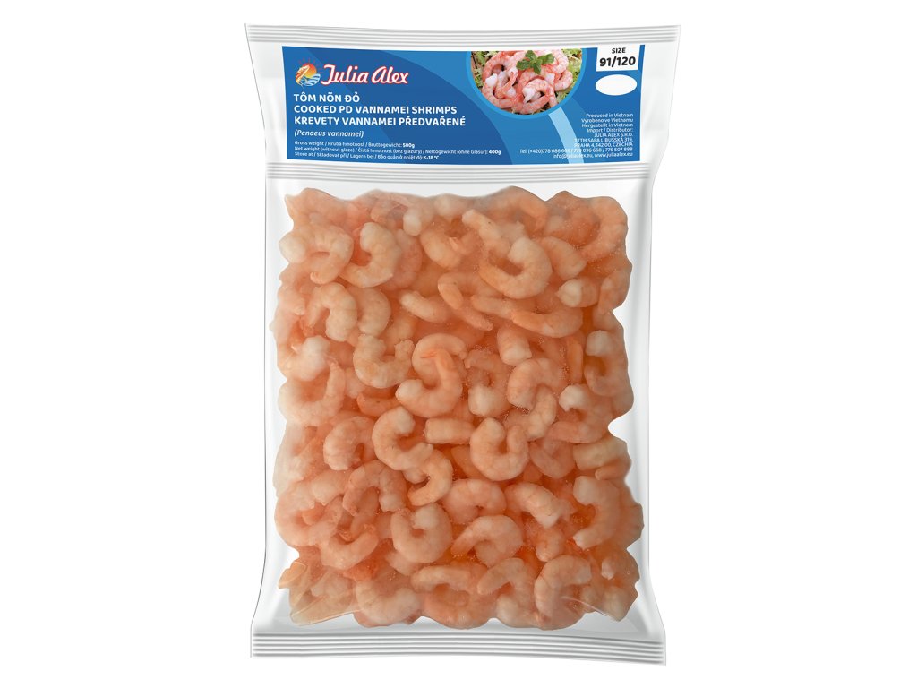 Tôm nõn đỏ 91/120 không đầu không vỏ | Krevety Vannamei 91/120 vařené bez hlav, loupané | Vannamei shrimp 91/120 cooked headless, peeled | Vannamei-Garnelen 91/120 gekocht, kopflos, geschält