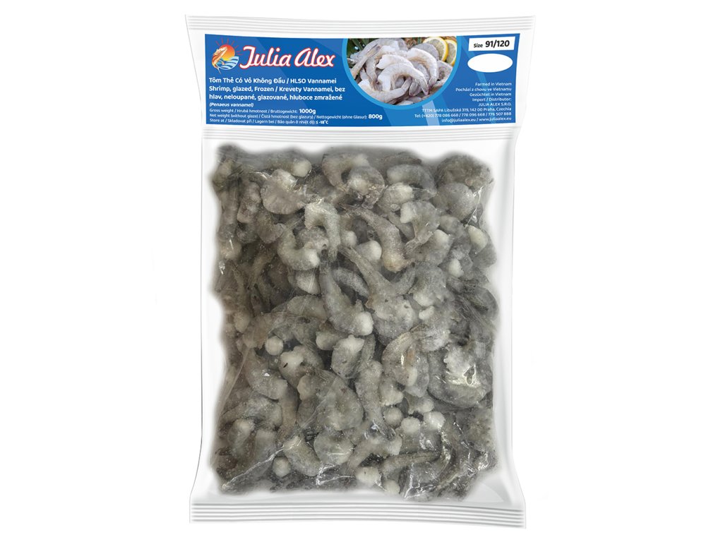 Tôm thẻ có vỏ không đầu 91/120 10x1kg
